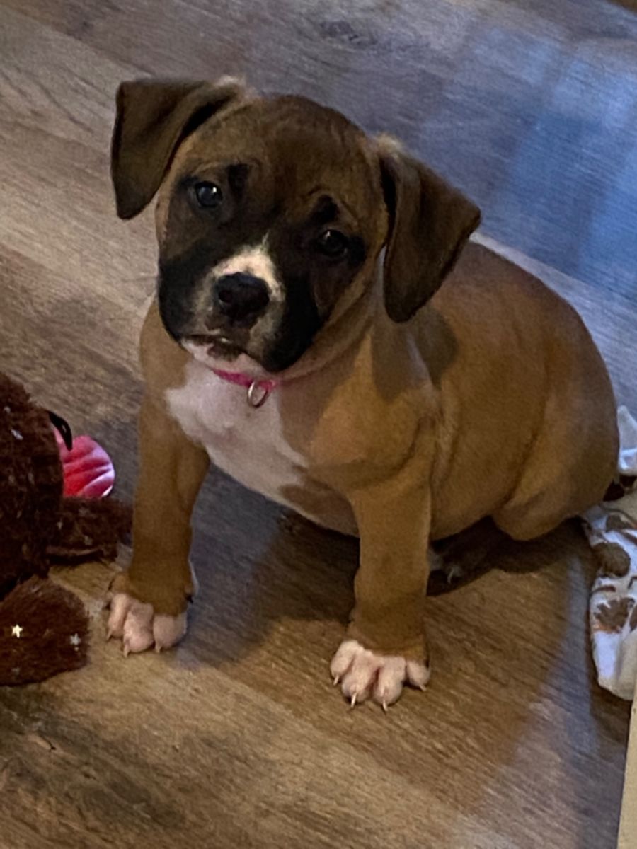 Get ready for lots of toys, games, activities and adventures! Her perfect family will be dedicated to her socialisation, training, and age appropriate exercise as she grows. Puppy school is a great way to get started on training and form a bond with your new puppy. Her ideal home will have people who want to make her a new member of the family. Fun loving and playful definitely describes her. She loves to snuggle, she loves to play is unafraid of other dogs and has shared a yard with cats and she adores her food. She is still a young puppy and she will need to be an inside member of the family. She will be an amazing addition to any family.
