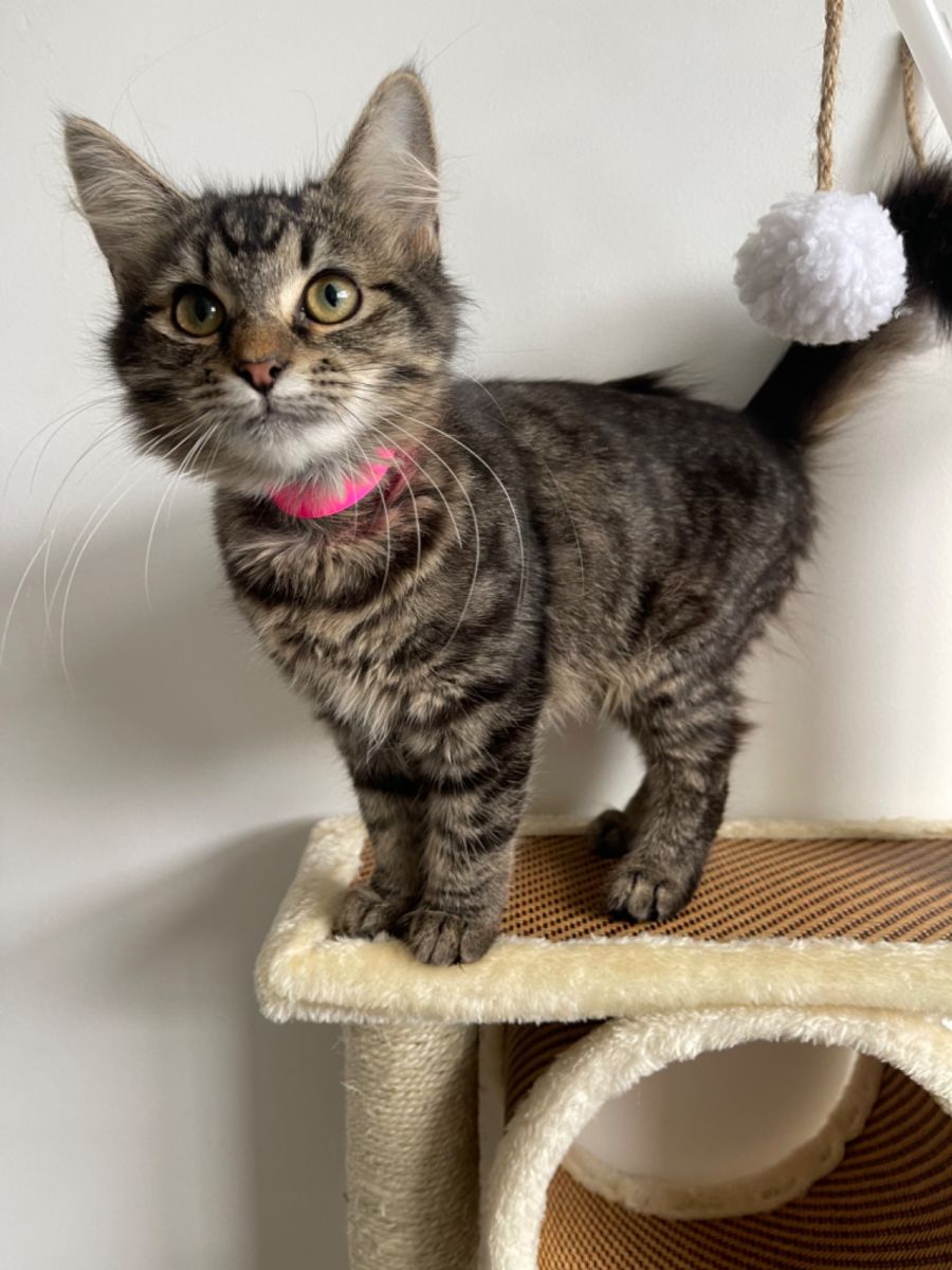 Hello, I’m Daisy! I’m a sweet little kitten that my foster carers constantly praise me for how lovely and snuggly I am. I have a sweet little meow that I often use just to say hi and let you know I’m there relaxing on the cat tower when you walk past. This usually means I’ll get a pat and a cuddle which I then purr to say thank you for the love.