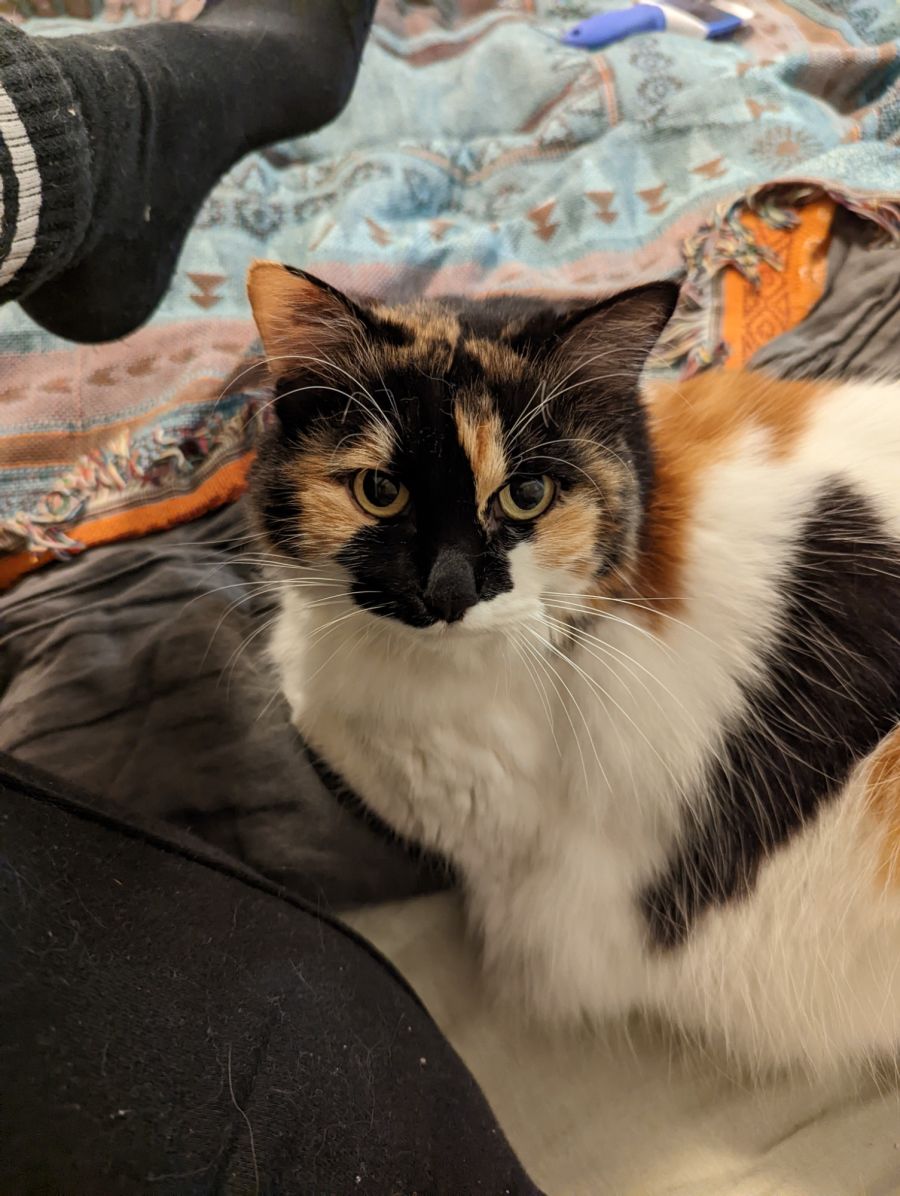 Pebbles is courteous and very proper, apart from the fact that she is rather chonky! She's very affectionate and likes to sleep nice and close to you.