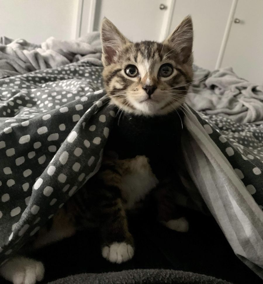 He really acts more like a confident, playful and clubby poppy than a kitten! He will instantly start purring, head-booping and demanding cuddles from you.