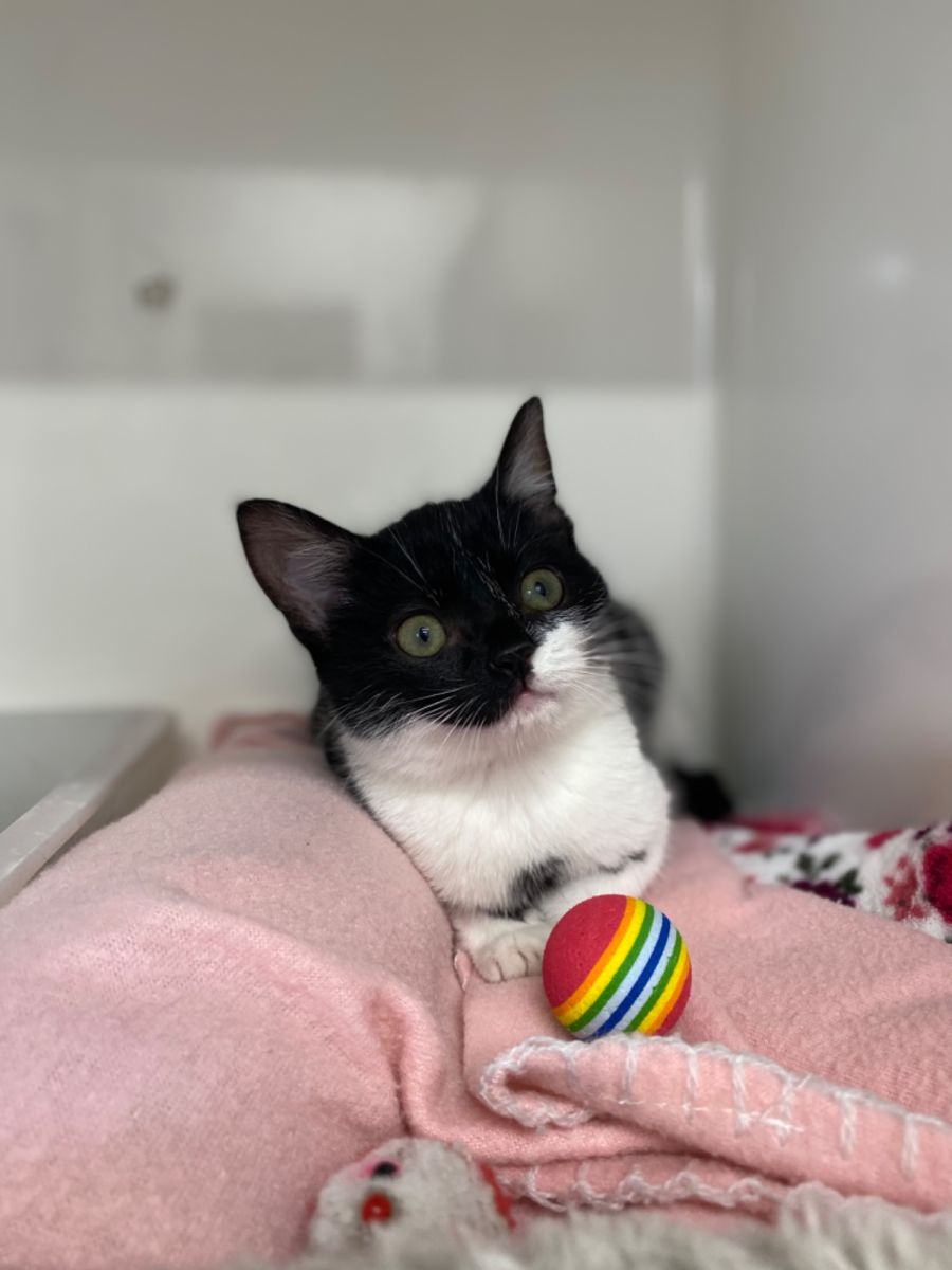 Valerie is a 9 week old Female Black & White Domestic Short Hair Kitten.