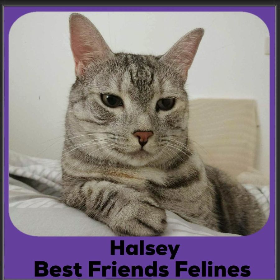 Halsey is a sweetheart who loves to love and to know she's loved. She's a little shadow, who will follow her humans from room to room, keeping them in her sights. She has beautiful markings and wins over visitors with her pretty features and friendly nature. Halsey is a quick learner and picks up new routines and games easily. She isn't shy and she enjoys affection, a good chin scratch or a stroke along the back of her coat. Halsey loves to keep you on your toes with how many pats she’ll enjoy at a time. Relaxed day times in a cosy space and evening zoomies before bed are her favourite. She’d be a great addition to almost any home once she settles in. Halsey is a sensitive soul, not a fan of noisy environments or other cats. In her perfect home, she would be the solo diva. Originally adopted from BFF as a kitten, through no fault of her own, she has found herself back in our care looking for a new family.