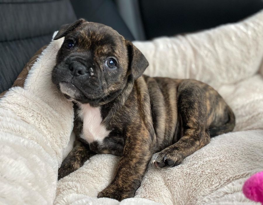 Frenchbulldog cross staffy means Paris is loads of fun and energy but on a serious note her breed mix can be strong headed and hard to train so an experienced family or someone completely dedicated to her on going training is a must.