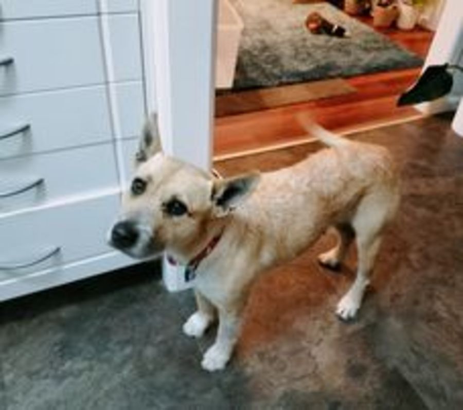 Lyla is ambivalent to our chickens but did break into our coop to eat their food. She hasn't been tested with cats, in the one brief encounter she's had, she showed signs of being intimidated. Lyla is cautious of everything. She can also be scared when meeting new dogs but hasn't had any difficulties on the dog beach or group walks.