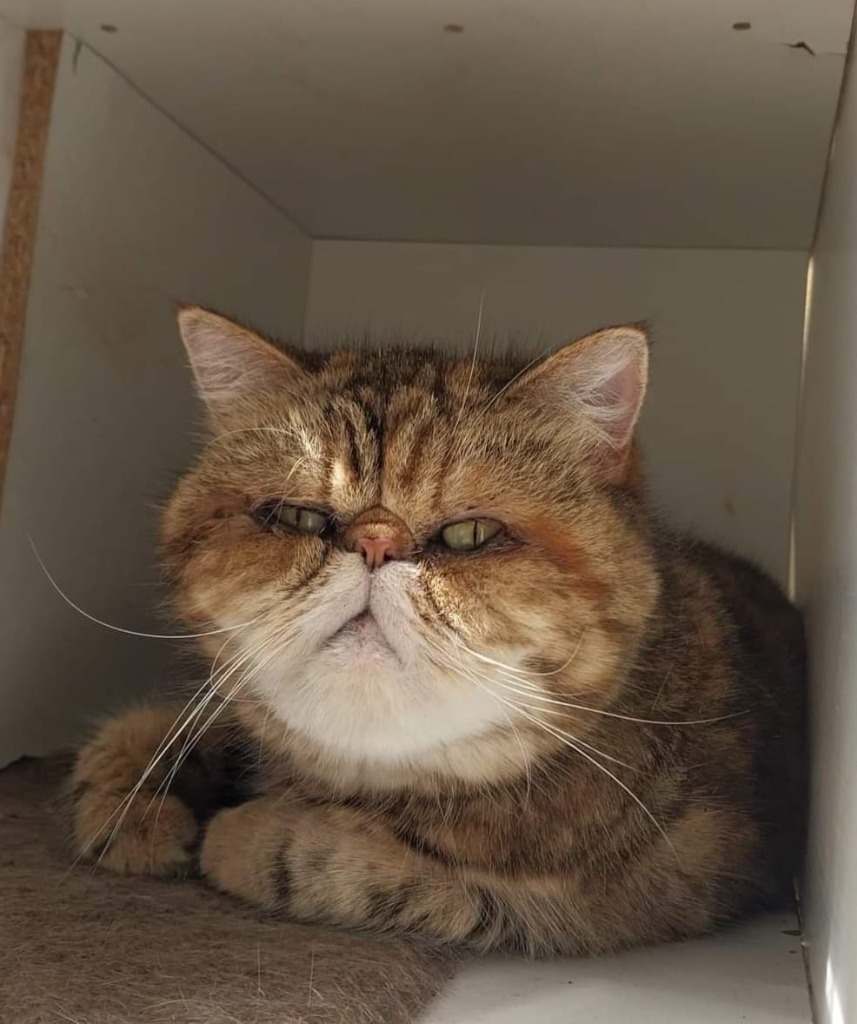 Yes, I have permanent resting cat face, but I promise that I'm actually very affectionate and playful. By my nature, you'd never know that I was originally found on the streets - scrawny and starving.