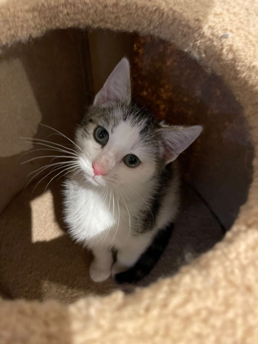 He came into foster carer with his mum and siblings and is now ready to pounce into his forever families arms and home. He has been in foster care with young kids, small and large dogs, adult cats and kittens and adores them all. He enjoys playing with children whether that be with a cat string toy or in the barbie house !