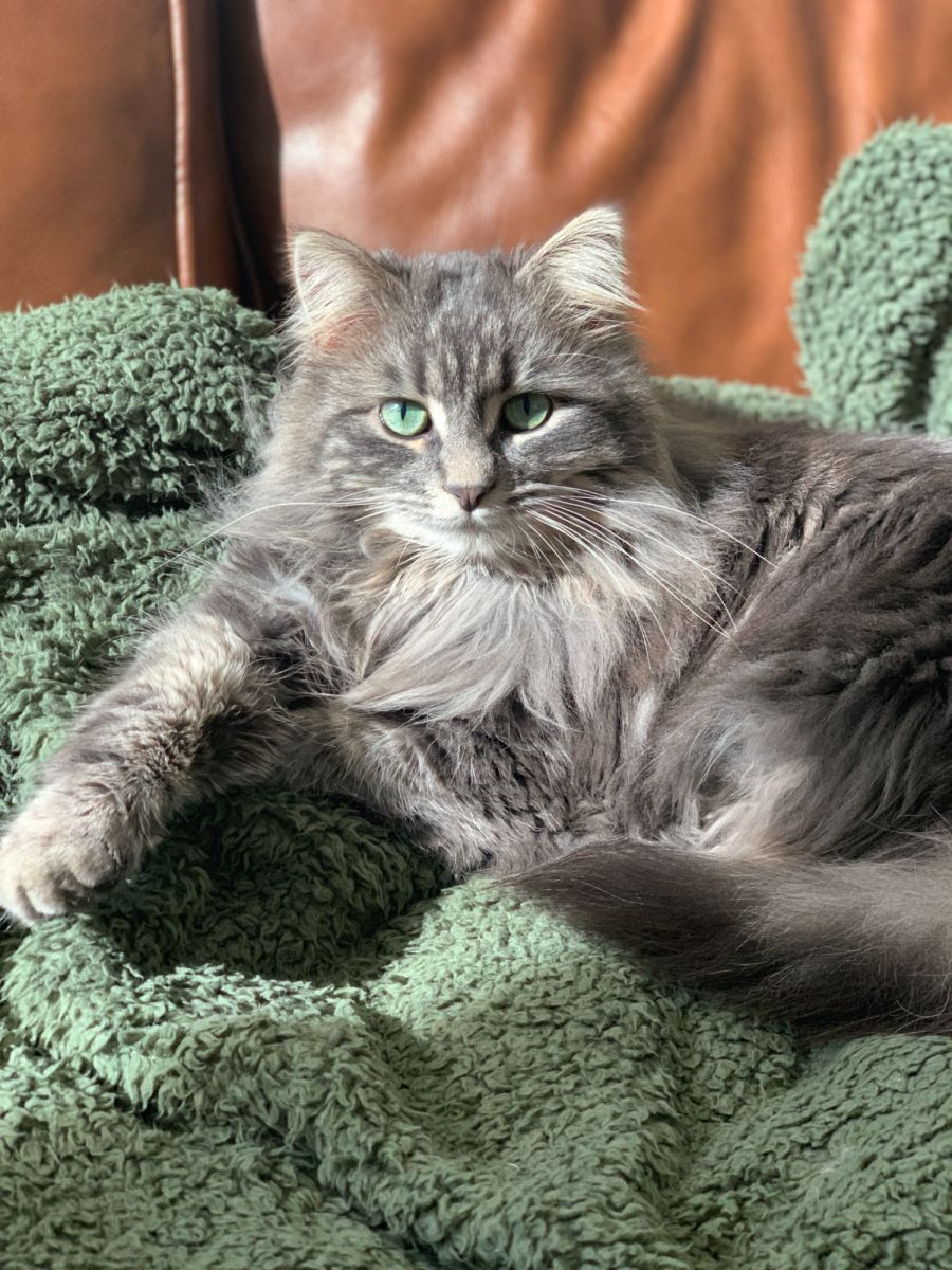 Maya is quiet, friendly, and happy to hang out at home alone while her humans are at work. This sweet girl is extra snuggly in the winter and adores sitting on laps or the bed. She loves chin scratches and snuggles, but being picked up is a no, thank you.