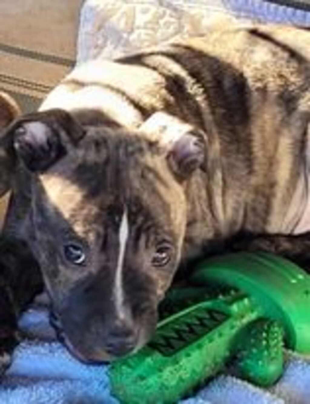 Blade is a brindle Staffy x male puppy approximately 10 weeks of age. As with all puppies, Blade has energy to burn and would love a home with a playmate to keep him company..even better if its an older dog who is happy to show him the rules. (Meets recommended to ensure they are compatible).