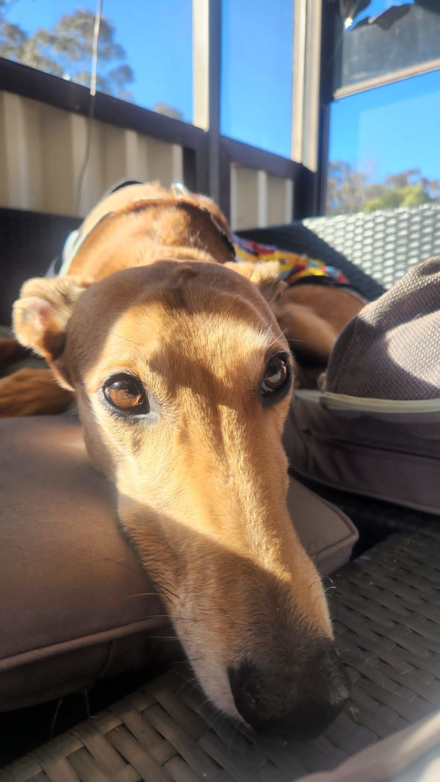 He would be suited to almost any housing situation, he is quite good at letting you know he needs to go to the toilet and so long as he had regular walks he would be fine in an apartment. Even though Almond is a Greenhound approved doggo, he will still need to remain on his lead at all times while out and about as he doesn’t have the best recall ever! I would recommend avoiding dog parks in the early days of him adjusting to his new life and new family.