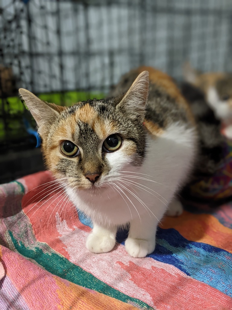 Hi there, I'm Doyly. Look at my amazing face markings and patterns - my foster mum says I'm really beautiful and very unusual.