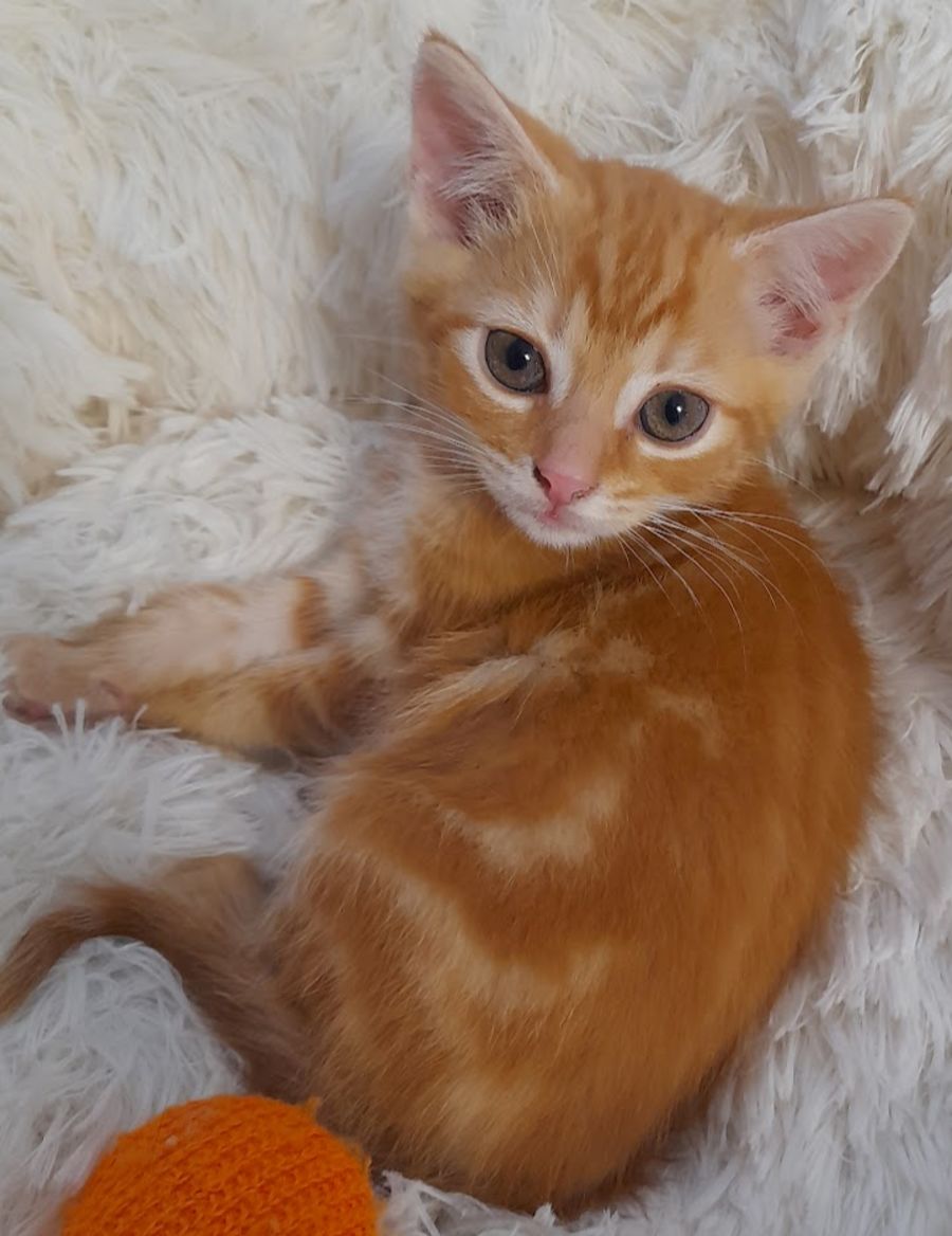 Hello everyone. My name is Becky, and I am the only ginger kitten out of a litter of 8 (AND I’m a little girl). We were surrendered to CADAWI when I was 5 weeks old along with our mum. I’ve enjoyed playing and sleeping with my siblings, but we are all ready now for our next big adventure. I am eating and drinking well, and I’m fully litter trained.