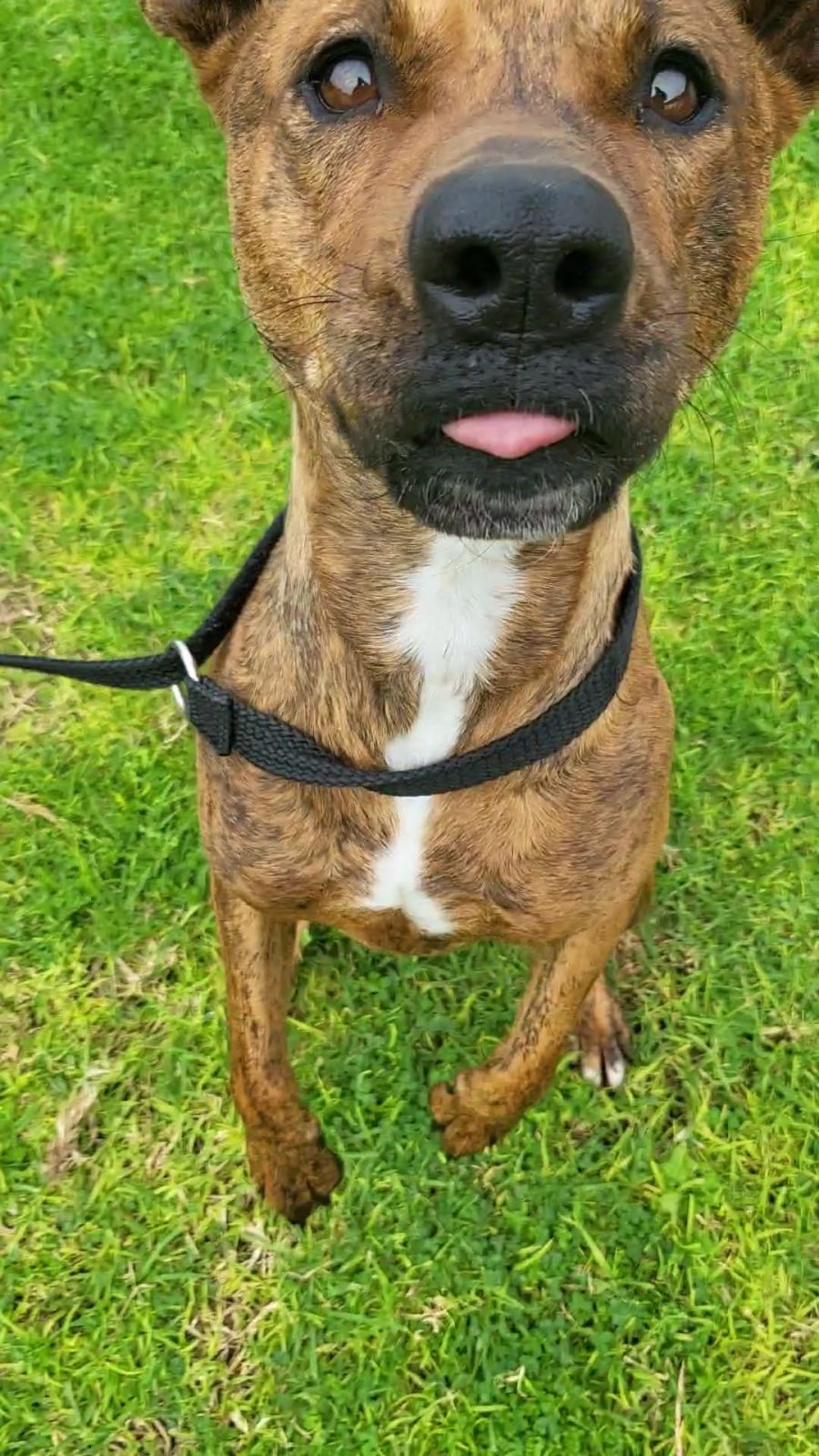 She's curious but gentle, easy-going with people, and has such a sweet nature. She's unsure of other dogs at first, but okay once properly introduced. She'd be happy as your only dog, may suit male dog pal pending slow meet. Not yet tested with cats or kids.