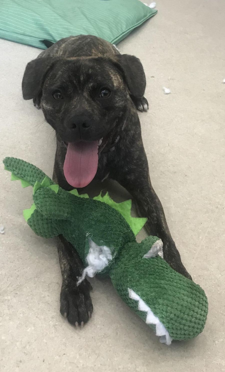This little lady is ripe and ready to start her adventure! She's full of beans and is looking for a family who can keep up. She's still quite young and has a LOT of energy to burn. She'll need to be walked at least once a day and would love for someone to chase her around the backyard, playing with her favourite plush toys. She likes to jump into the shell pools we have here on a hot day so would be the perfect companion to take to the river or beach for the day! She's dog friendly too so she'll make lots of friends along the way.