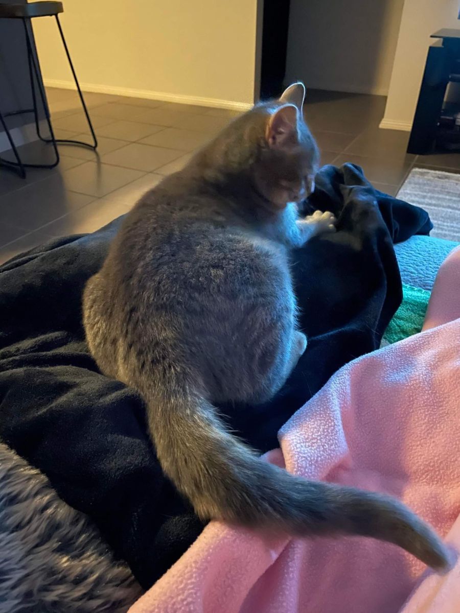 Katniss is a quiet girl and doesn’t like fuss. She will happily find a quiet chair to curl up on and sleep for the day.