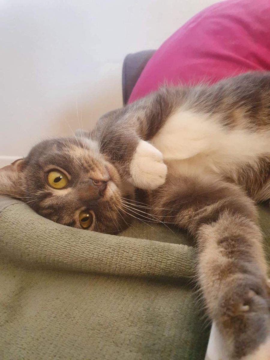 Lola takes time to get comfortable with people but once she does she is full of affection and purrs and is an absolute lap cat. She prefers to make the initial contact and needs a gentle hand and patience with first approaches. While she is a serious snuggle bug she is also a young cat which means she can play for a long span of time; string toys, squeeky toys and of course zoomies!