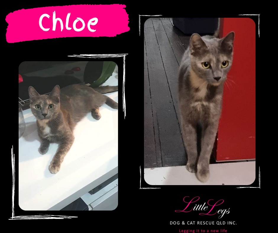 Chloe is an adorable little girl jam-packed with personality. She enjoys being around humans and loves to play once she's settled and comfortable in a new home. She can be super chatty and is also very food motivated. She is very independent/comfortable on her own and can be selective with other cats initially. Chloe is a little pocket rocket, she might be small but she's full of fun and love.