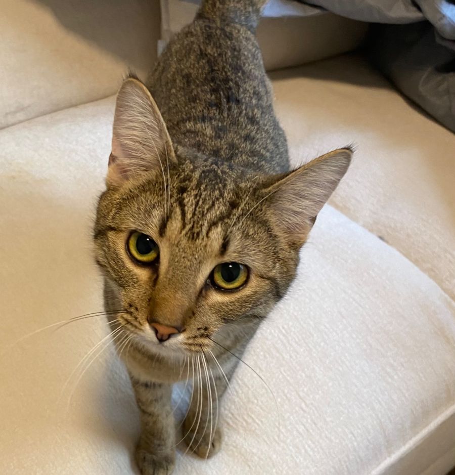 Molly is an absolutely delightful cat who will quite literally strut out of her carrier and make herself completely at home. She will head boop you instantly and walk around as if she has been there for years.