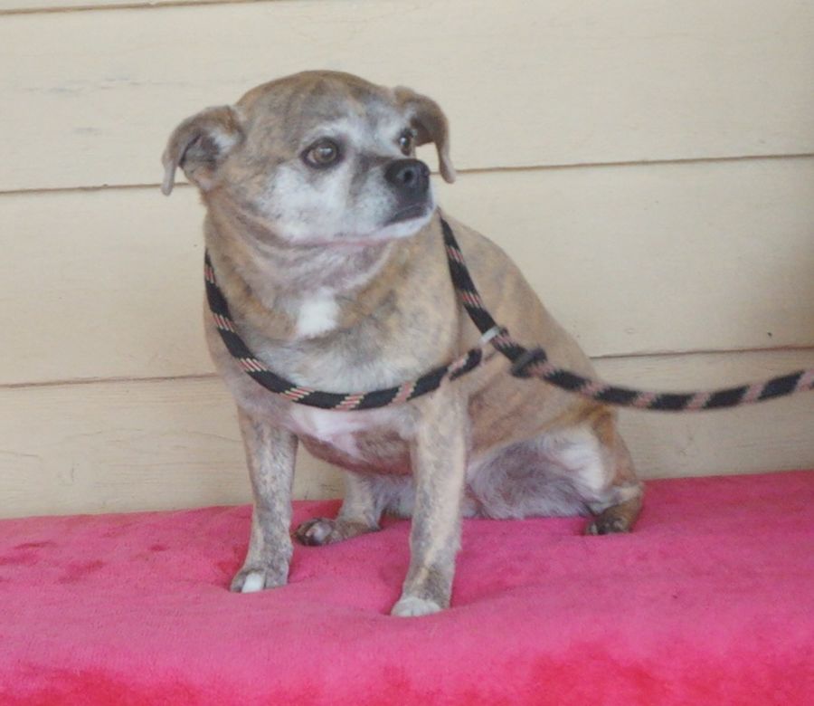 Super sweet Dulcie was surrendered to rescue through no fault of her own. She is a STUNNING color - smokey lilac and tan brindle. Photos don't do her justice - we will get more weather permitting!