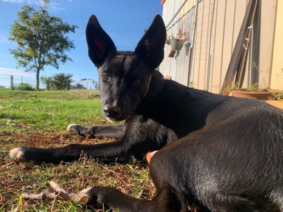 Little Edna is a black Tropical Dingo, raised with her siblings, Nelly and Warnie. She has been fostered by a dog trainer and wildlife educator from the Northern Rivers, being developed so she has the best start at life. Socialised with all sorts of places, sounds, animals and people, but her training must be continued.