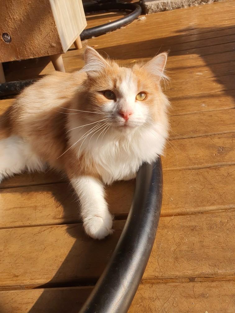 Ghost is a nine month old long haired champagne ginger and white boy with an extra fluffy tail. He has a plush coat that is easily brushed (which he loves) and is just gorgeous. His whole demeanour is relaxed and accepting. He is the sweetest, most gentle laid back cat and will not defend himself, so he needs a home that is safe and secure.