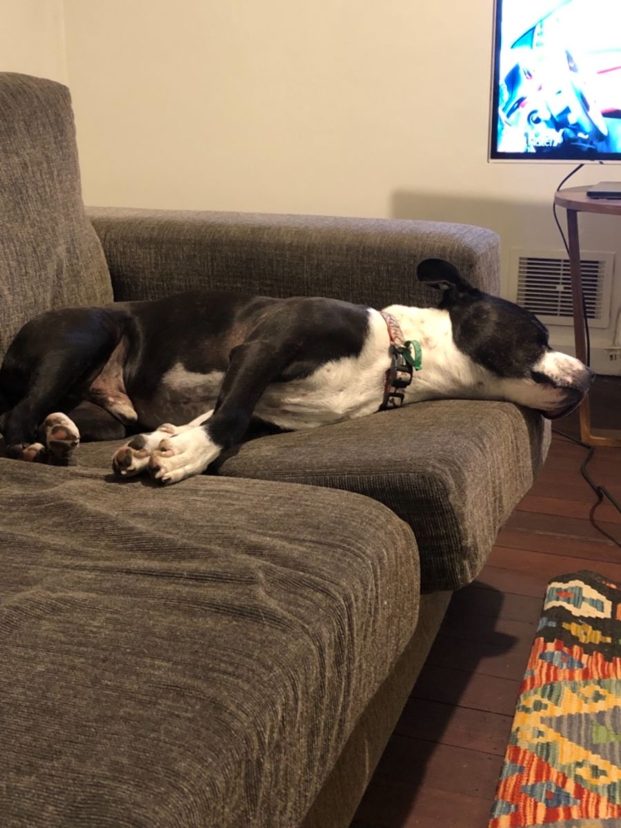 Boris likes to sleep on the couch and be near you. He has mild separation anxiety so will cry when left. Really needs a home body.