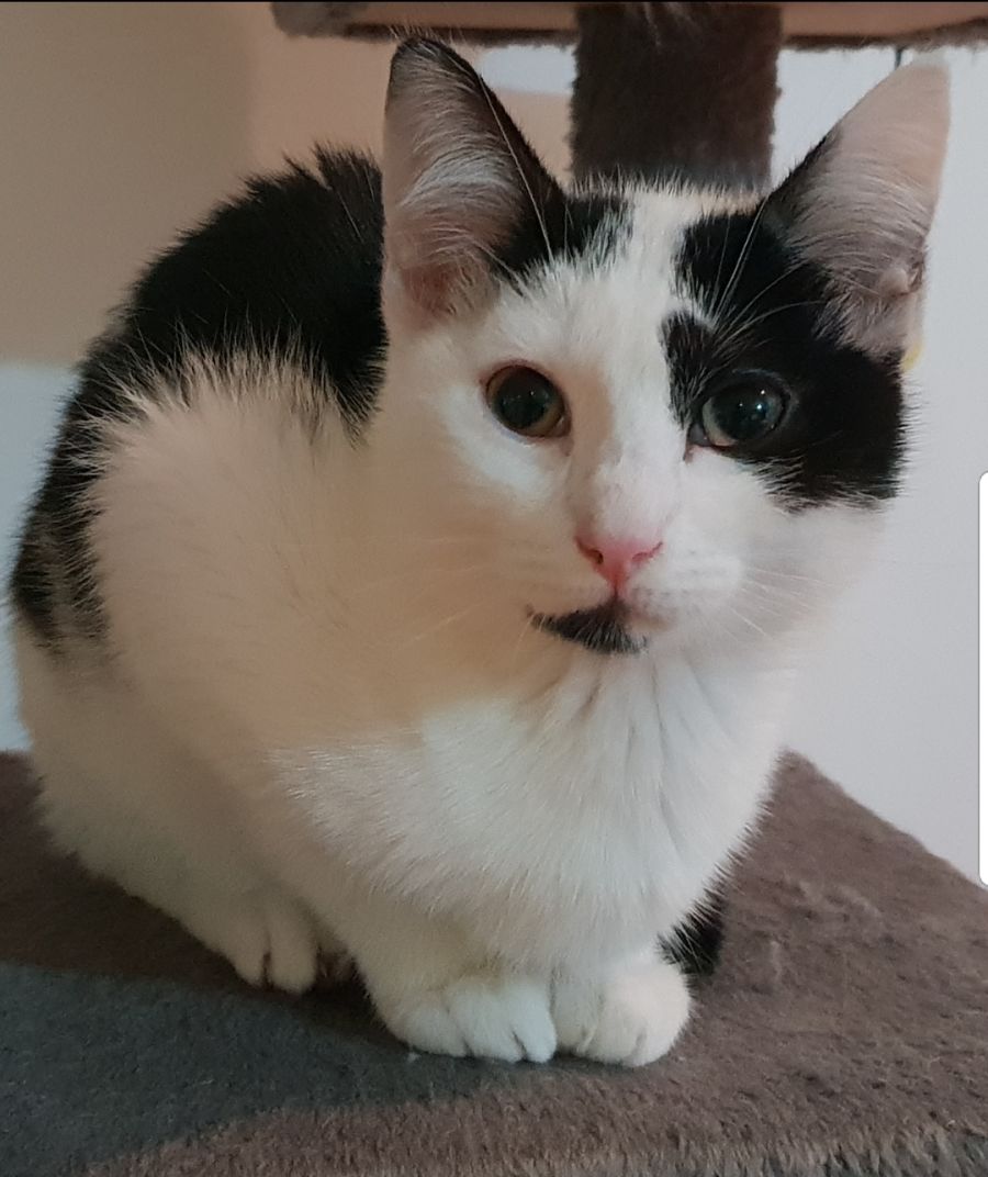 Little Panda is a soft natured kitten who loves to explore her surroundings. She likes to know your there with her but is also independant and at times happy to just sit and chill on her own. She has started to play with small ball and toys. Panda is great with my two resident dogs and two cats and due to her chilled out nature has got in well.