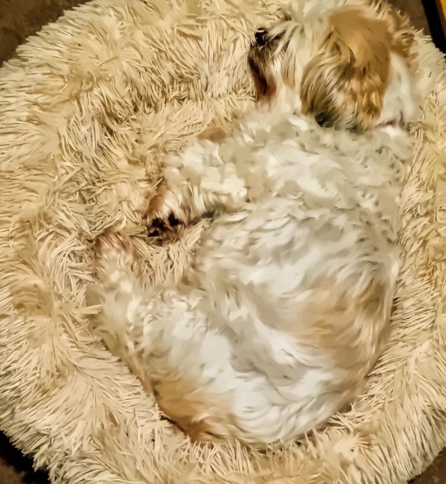 He is house trained and sleeps beside his foster mum and dad's bed all night. If he needs to toilet during the night he will let you know. Toby loves his walks, but only a short one as he gets a bit tired. He loves going in the car and travels quietly in the back seat. He also has a soft toy he loves to throw around and play with.