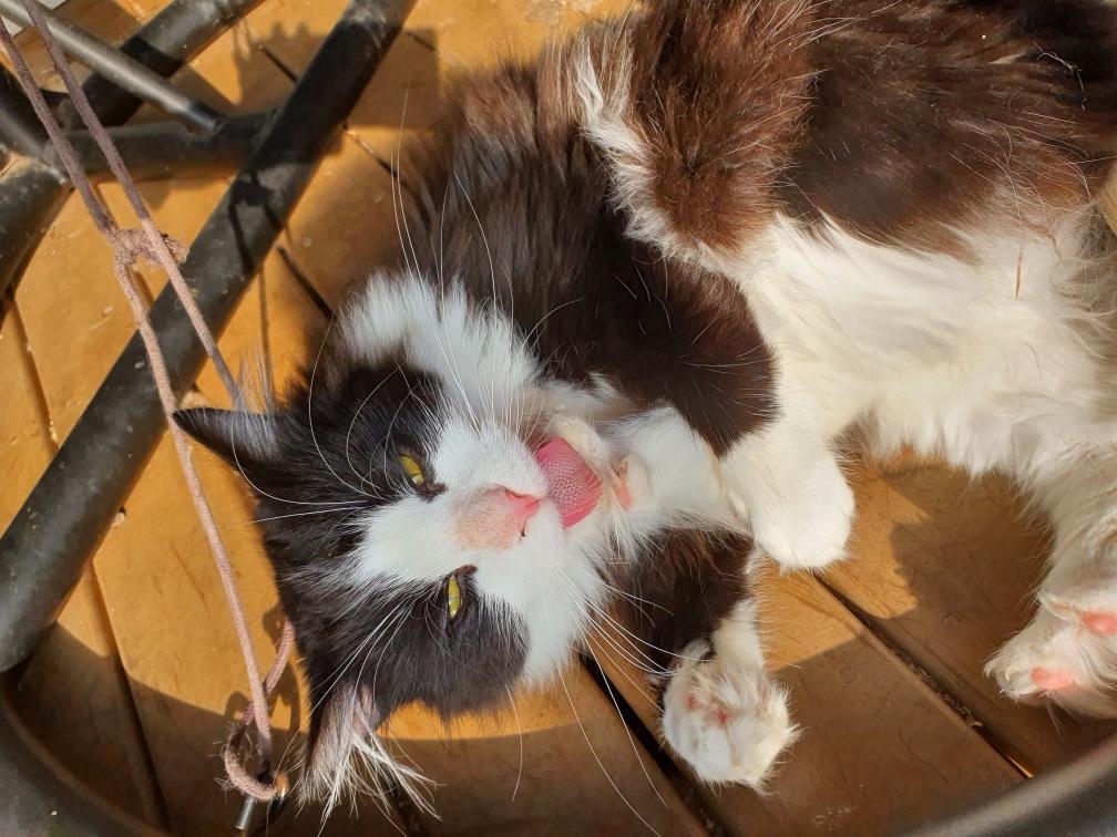 He loves humans and is never far away. Loves loves his toy rat. He proudly carries it around, tosses it in the air, stomps on it and then licks it better. Its going to have to go with him to his forever home! He is not fussy with his food always happy to eat. He is so easy to care for, his beautiful coat is easily brushed though it has a tendency to develop dreadlocks so will need an adopter who is happy to help with his grooming and brushing, he will purr and love you for it. He is otherwise undemanding and gives lots of cuddles and will melt into your lap as you watch tv. He would make an ideal companion for a single, a couple or non threatening family. He would make a much loved family member.