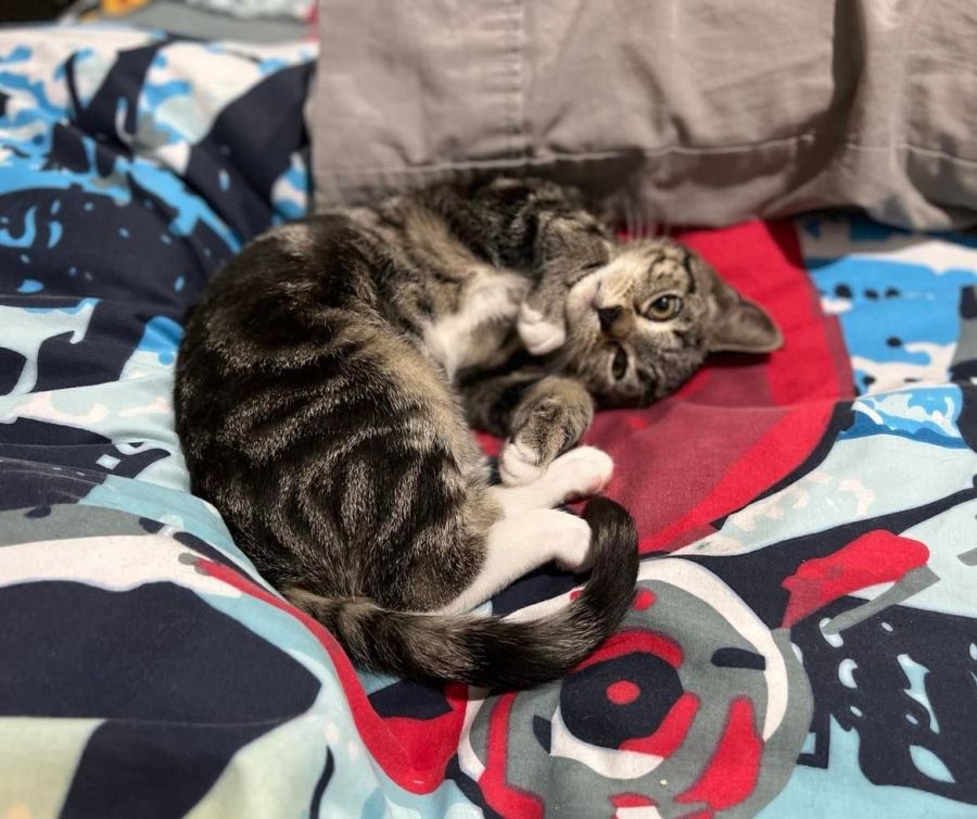 Tasha has not let her experiences phase her. She is an active, playful and loving girl that loves cuddles and snuggles. Tasha is in foster care with an adult cat, another kitten, a small dog and Teenagers.