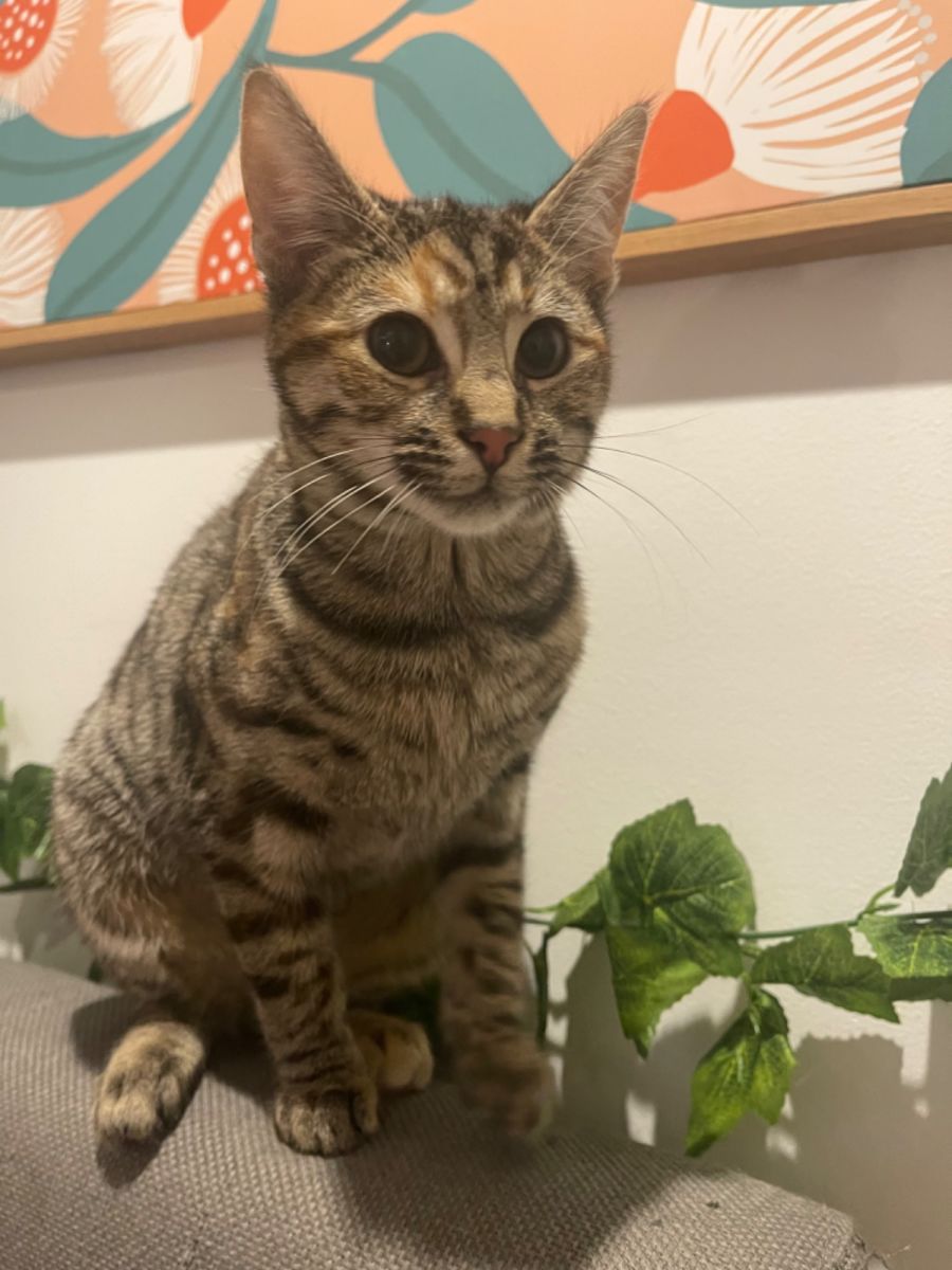 Mei Mei is the most relaxed kitten in foster care. She is independent, enjoying her naps in sunny places or snuggled up in the cat tower however also loves to cuddle up with you on the couch or when your in bed. She loves to lay beside you and purr away showing you how much she loves you and your pats.