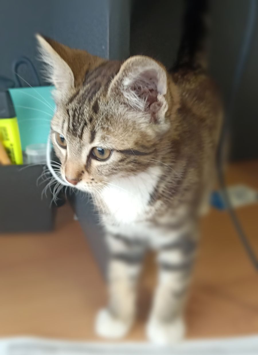 Anja is a female tabby & white kitten who is approximately 12 weeks old.