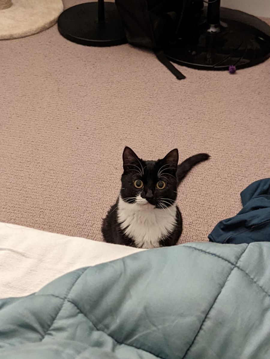 She isn't afraid of new people and may quickly warm up to you and sit on your lap! She was also very quick to train to use the scratching post instead of carpet/furniture - with the help of delicious treats.🥰