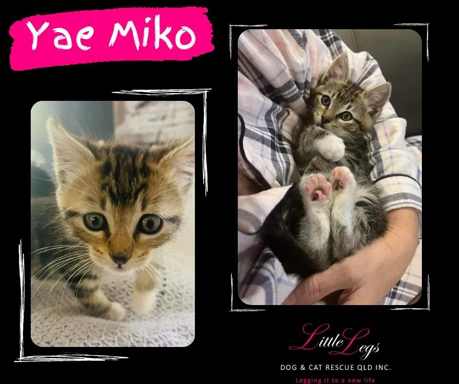Yae Miko is the most divine kitten! She is an absolute purring machine. She loves to be held, cuddled, bedtime, couch time, play time! Where ever you are she will be nearby! She loves to play chasey and rumble with her foster brother Hoodwink and foster sister StarStorm. She is so soft to touch. She will be a gorgeous addition to any home.