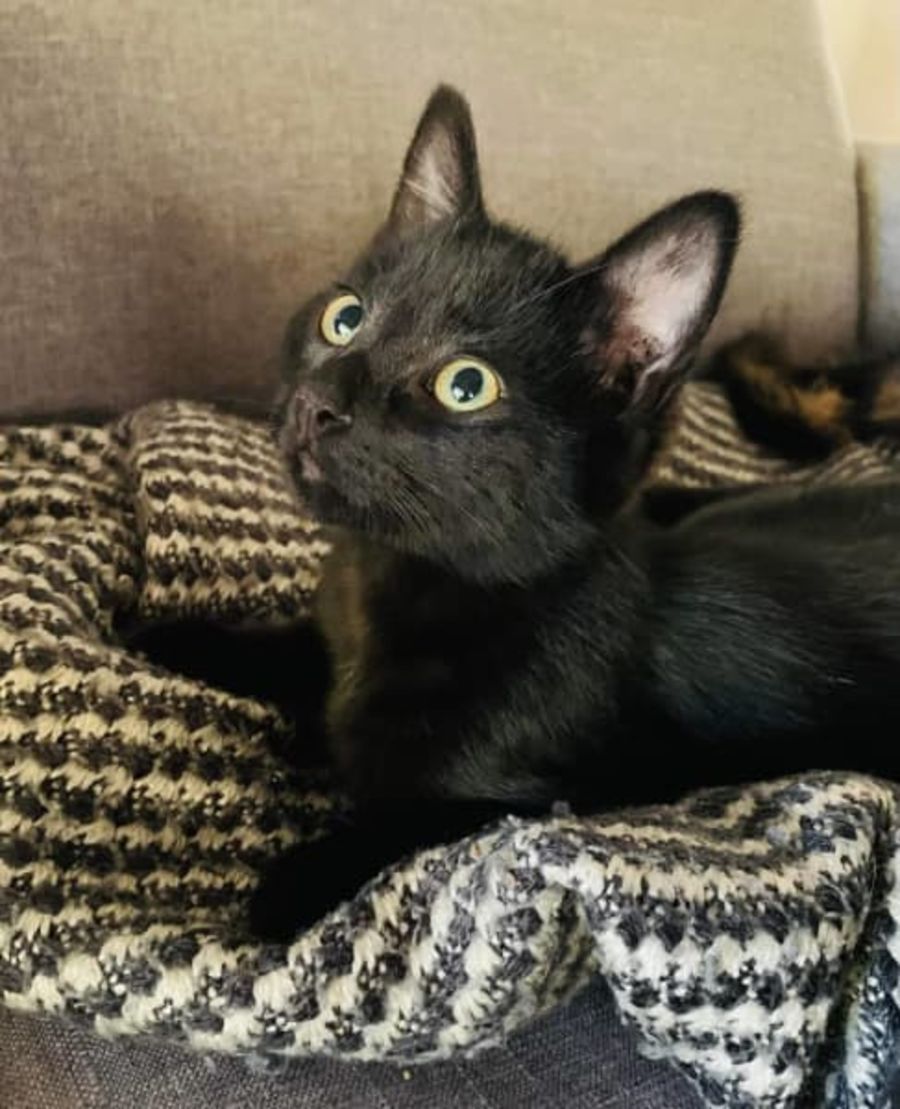 Phoenix is a black, short haired male. He has a heart of gold and a purr that starts as soon as we talk to him. Phoenix came in with his brother and 2 sisters, they were a little shy at first except Phoenix, who was straight out and getting to know everyone. He loves to sit and snuggle but he is also a real live wire and does super zoomies all over. He is fostered with a large family at the moment and would suit either a quiet house or a busy family. He is available for adoption or if an option, a dual adoption with one of his siblings.