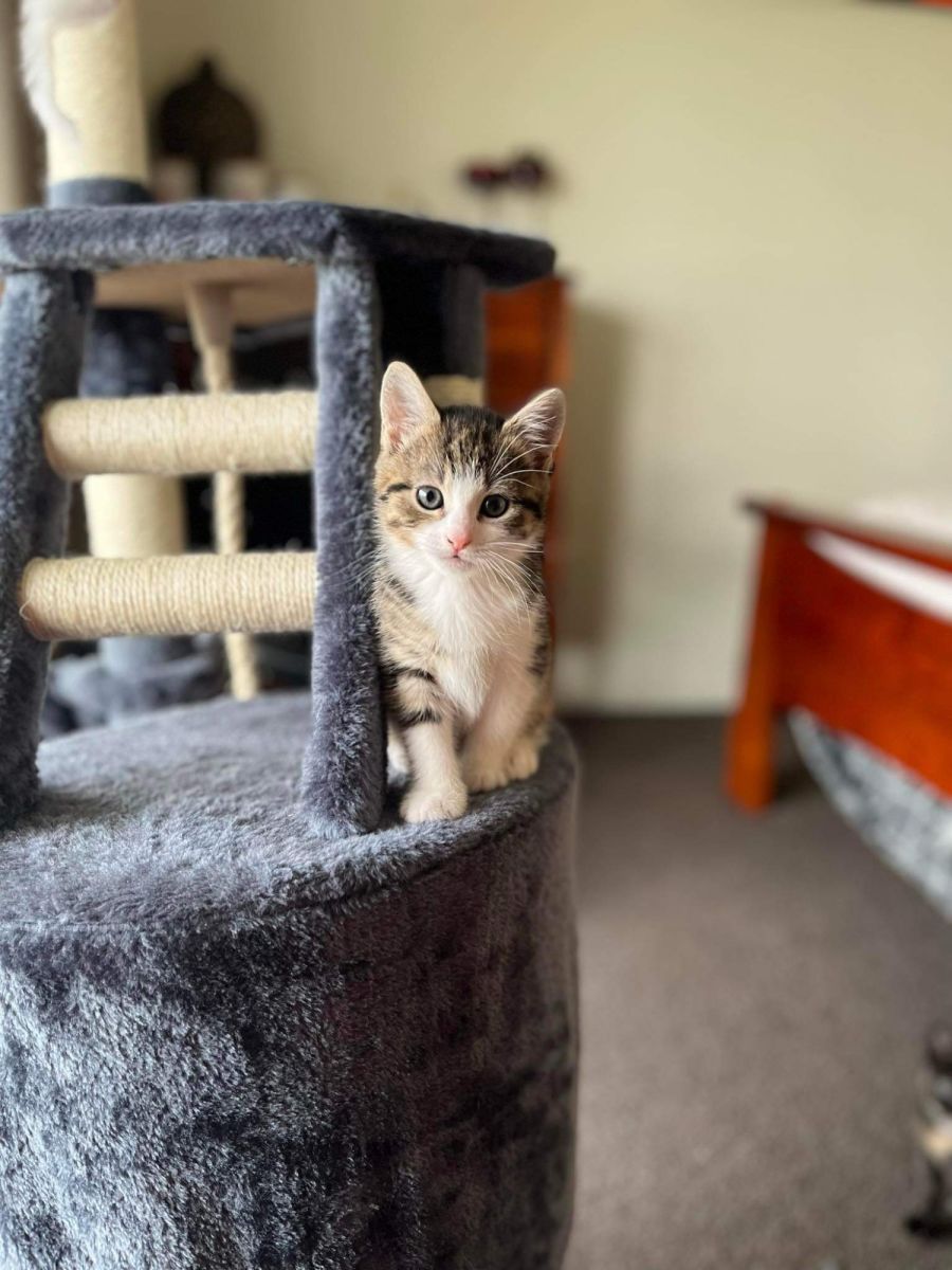 Bubbles is the leader of her sisters & the adventurous one. She is ever curious & always has an eye on what you are doing. Although shy in new surroundings & people, she is the first to take the brave steps to explore & test the boundaries. Being an active kitten, she doesn’t like to be held for long - but she will tolerate it. She is currently not a snuggly kitten, but will sleep alongside or near you when she has had her fill of zooming around. Bubbles will accept face smushing & kisses before racing off to a new adventure.
