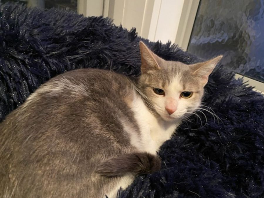 She likes other cats & doesn’t mind being left alone when you go off to work.