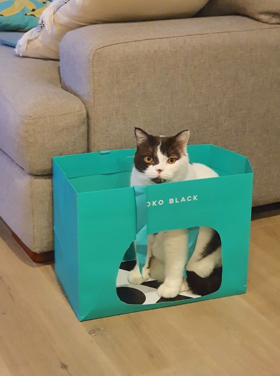 Luna and Mocha are indoor cats. They love cardboard boxes and will always find a way to squeeze in! Luna also enjoys paper bags and rubbing her head against your hair. Mocha loves chasing moving objects, like feathers or toy animals, and lying in the sun.
