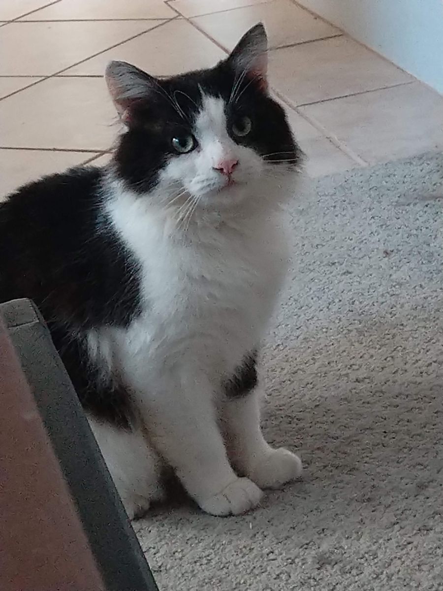 I am a beutiful long haired Tuxedo gentleman, I grew up in a large cat colony and spent most of my life outside in the cold weather. After winding up in foster care with my stepbrother I have begun my journey to becoming the most fluffiest handsome house cat. At first I was quite scared and shy and didnt trust humans. However after much treats and patience from my carer I am learning to come out of my shell and become a regular old housecat. I stay currently with my stepbrother Cripsy. I am very cat social having come from such a big family. I love running up and down the house when it gets dark and talking to anyone around when i am exploring.