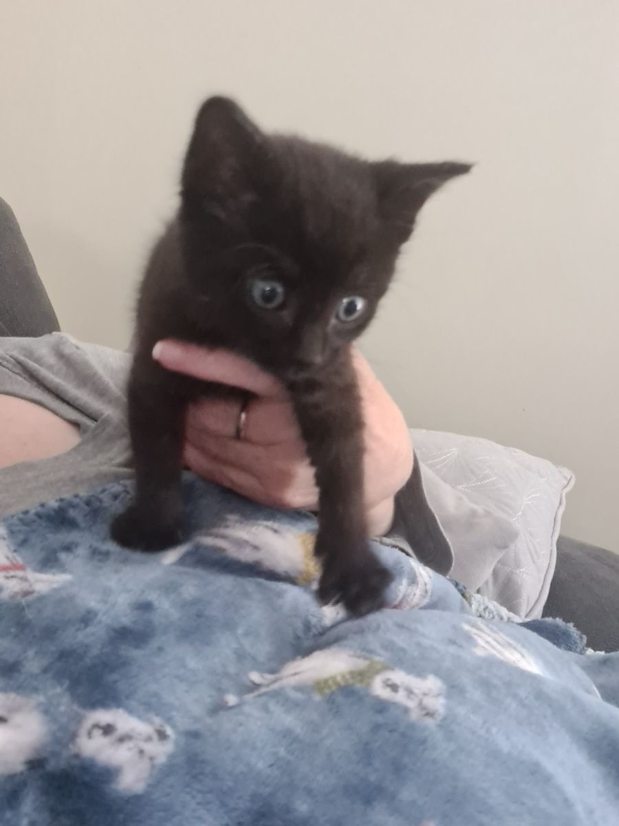 SAMUEL ... 4 weeks of age so ready for release end of September .... He is socialised well and will love to be a "lap kitten" ... Remembers "blacks" are the best members of families and just love everyone ... holding deposit is required ... LOCATION TOOWOOMBA ... carolangelsrescue@gmail.com for more info