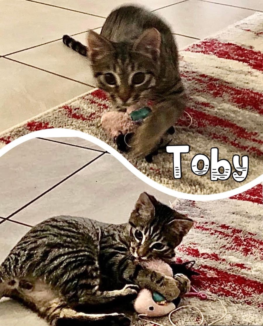 Toby, male tabby kitten, approximately 3 months old.