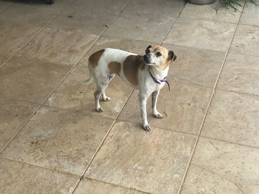 Lila is a 7 year old mini foxy x . with long legs , she looks very much like an Italian greyound and may be crossed with a whippet. Lila weighs 7 kilos