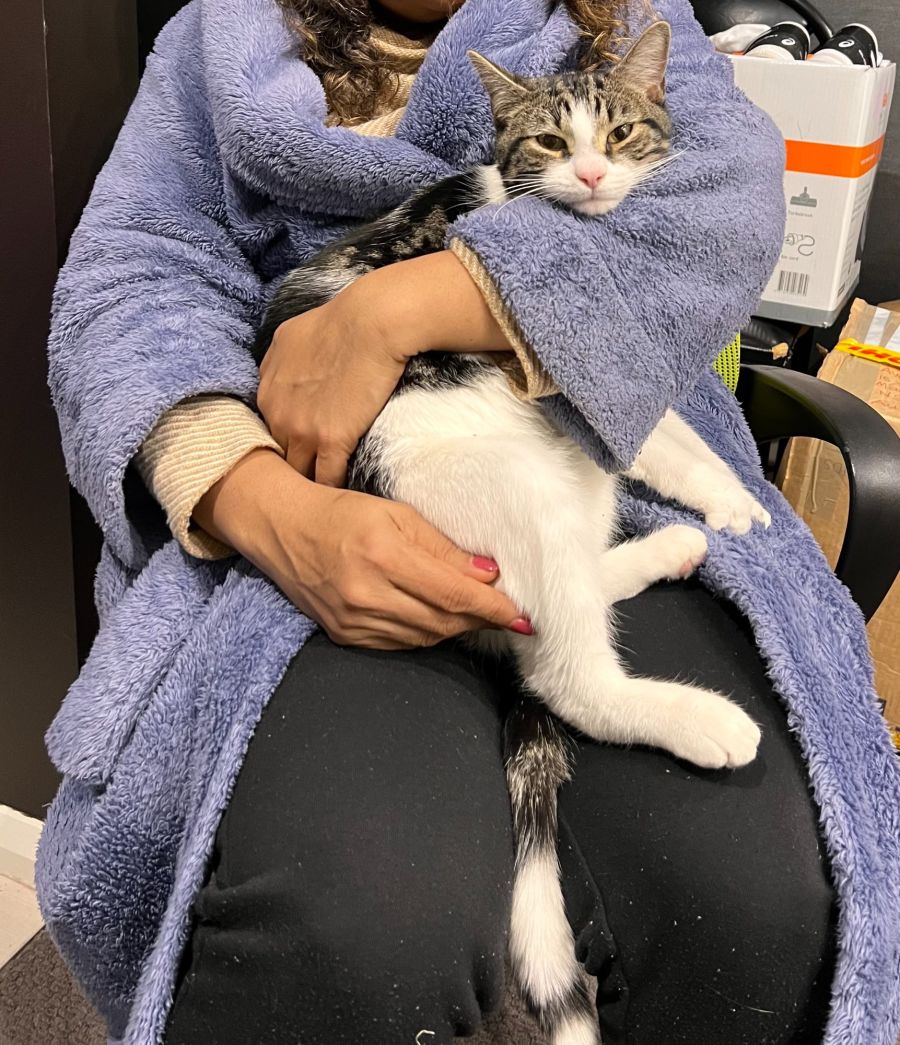 His rescuer found him sleeping under a café this winter and took pity on him. He was already desexed. This is what she says about him