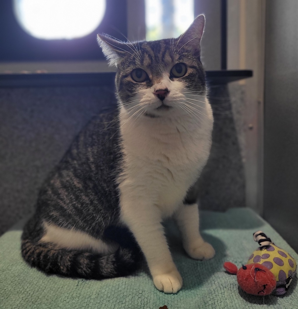 Im an inquisitive friendly cat that loves checking out my surroundings and coming up to friendly people for scratches! Like all cats I can be timid at first, so a launch room will help me settle in well to my new home. Everyone that sees me falls in love with me so get in quick and apply to adopted me online!