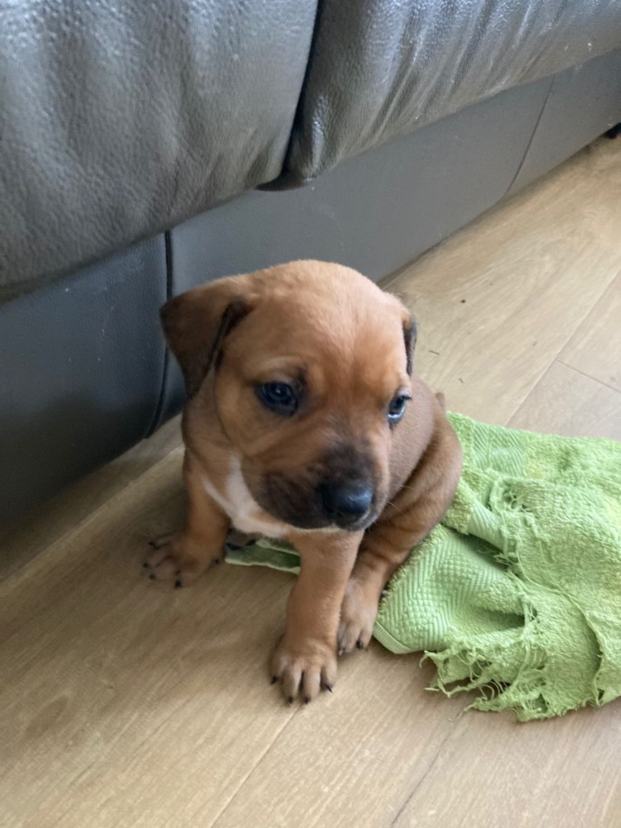 Get ready for lots of toys, games, activities and adventures! Momo is looking for a home with another dog for company, play time, and to learn from. As we believe Momo is a Staffy X Mastiff Mix, you should be prepared for a large adult dog.