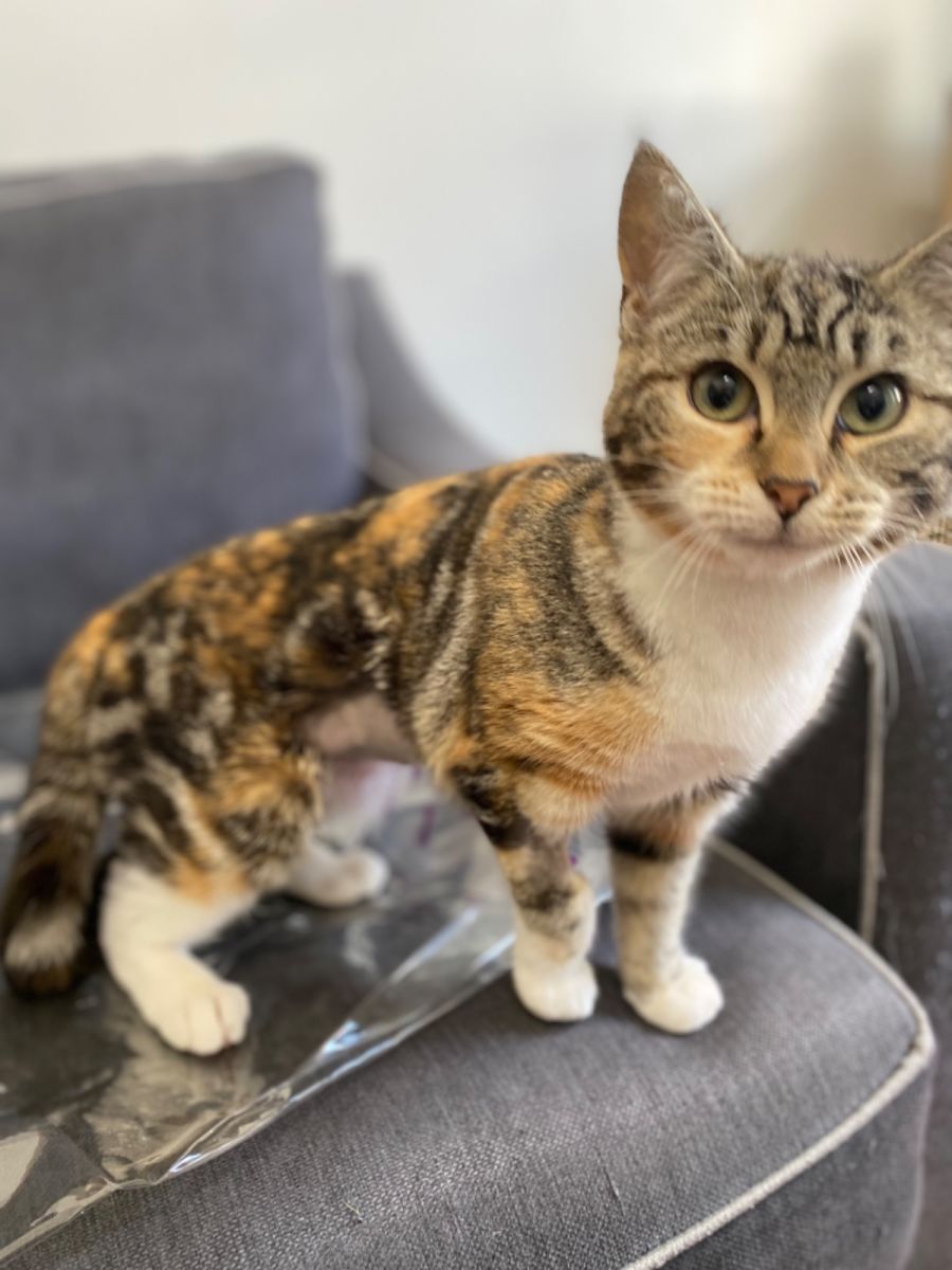 Buttons is approximately 3-4 months of age. She came from a feral colony but her personality is absolutely amazing. Always ready for a head boop and a cuddle - this girl just wants your attention.