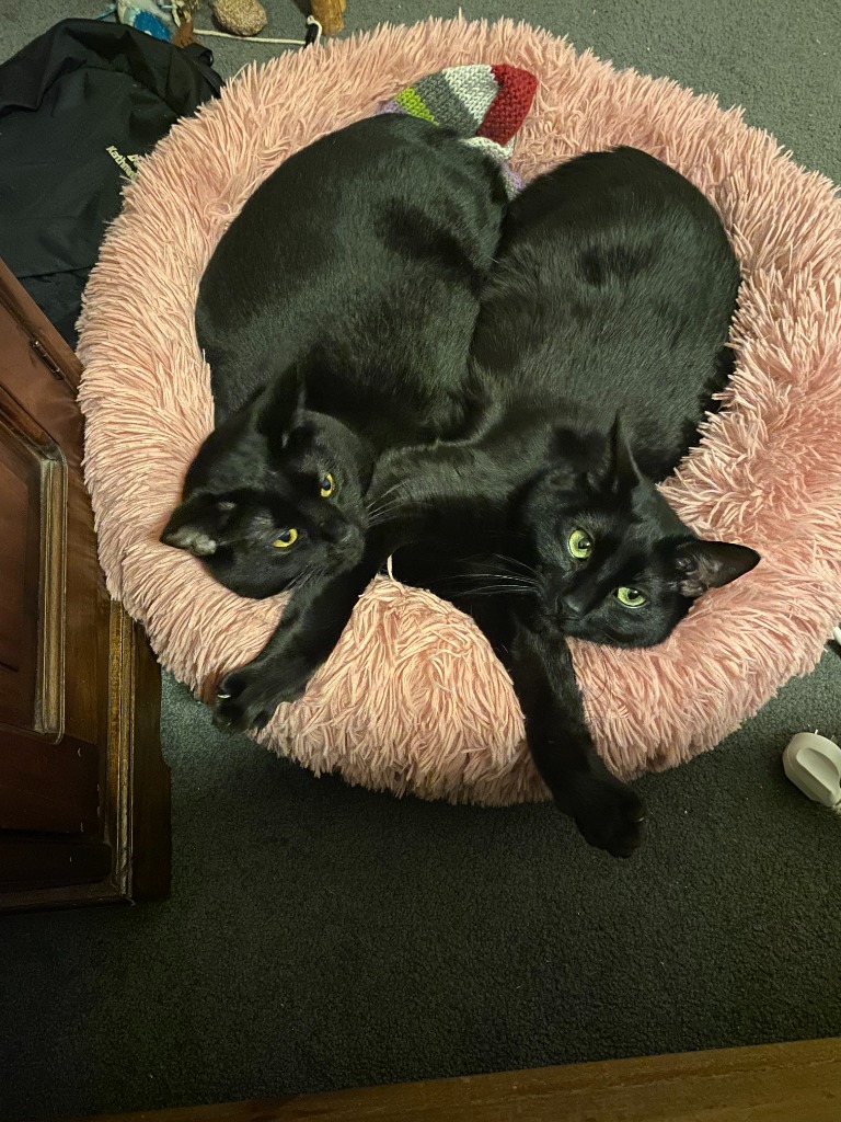 I'm the more active of us two, a little needy (you got a problem with that?) and I meow a lot - I like to talk ok? I stick my nose and whiskers into lots of things - I'm very curious about what's going on in my world. Cuddling and belly rubs, give 'em to me baby. It could take a little while for me to come round to you (there was some trauma in my life when I was a little kitty) but I am very loving, quirky and sweet - yeah, maybe a little on the clingy side, but once you know where the good love is coming from, you know. Strangers and loud noises stress both of us out and we do like our quiet time bird watching and lying in the sun. But then when it's play time, watch out - I like getting my toys out and showing you which ones I want to play with! When it comes to who's top cat around here, well that'd be me, of course. Sometimes, at night I might have to put Ava in her place, but it's all in good fun and there's no hard feelings. She's my girl, my ride or die and I love her as much as I'll love you.
