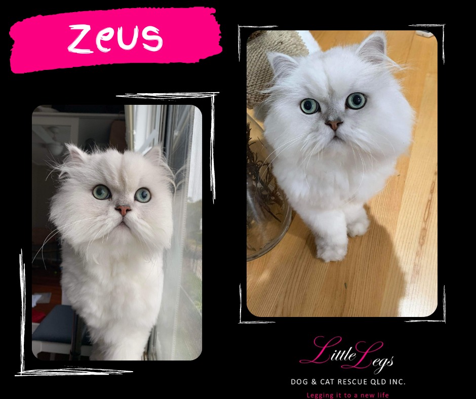 Hi everyone, I'm Zeus! I am a real sweetheart that certainly catches people's eye. If you want a loving, friendly companion who loves to be around you and loves a pat, I'm your guy! I love to snuggle up in bed and will never say no to a pat. I'm very vocal and will meow when I want your attention. I am very food oriented and I LOVE treats, I will eat them from your hand. Although I am 10 years old, I still love to play when you dangle a toy in front of me. I have lived my whole life with cats and dogs. Dogs don't bother me but I can be selective when it comes to other cats, it may take a while for me and your other cats to get along and be happy to share the house. But I would also be very content if I was your only fur baby. Although I am very handsome, it is very important that I am brushed daily as my hair can get tangled/ matted very easily. I am happy to have a brush, a bath and sometimes be clipped (mainly in hot weather). Please note that I am currently clipped, so my hair will be much longer than this at full length. Please only apply if you have experience with a long-haired cat that requires very regular brushing and grooming as it a lot of work. Apply if you're the perfect match, I look forward to hearing from you soon 🐾
