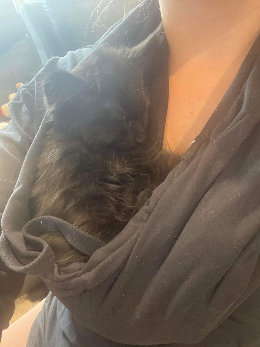 Coco is a happy and chunky kitten who absolutely loves human company. She loves to cuddle and once she finds her person in the home she will follow you around like a shadow. Coco is a bed hog, she loves to sleep with her humans and will climb under the blankets at the first opportunity.