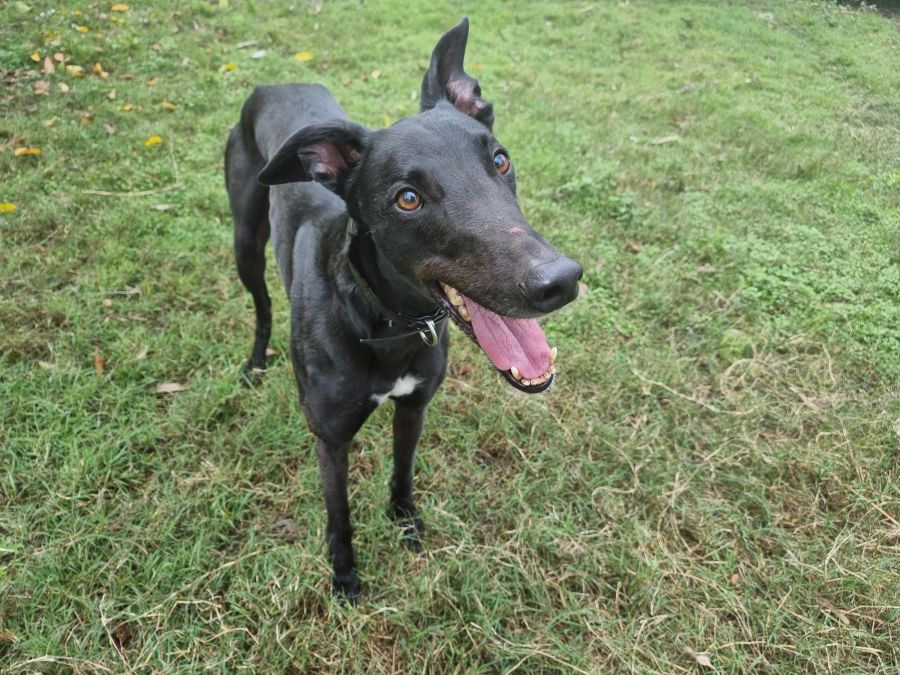 He is untested with cats at the moment but seems okay with the other dogs. He is quite playful and quite big so can be intimidating to them I guess.