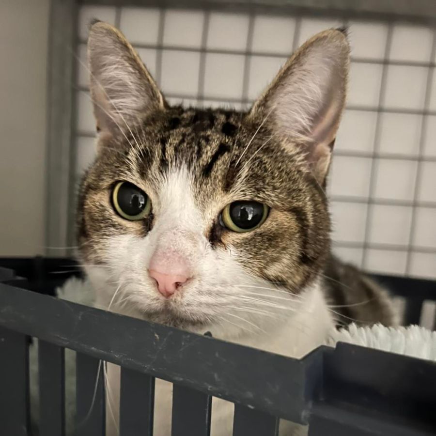 IMP 134 “MUMMZY” is a 9 year old tabby and white Domestic Shorthair who was surrendered due to no fault of her own. She is very affectionate however she is not coping in our cattery and is shying away from people and not wanting to eat. We know she is an indoor cat who is very loveable and wants to be with people when she is in a home environment. Her release fee is $65 which includes all her vet work completed and a litter tray, scoop and food. If you would like to meet MUMMZY please contact the shelter on 65833488. Thank you.
